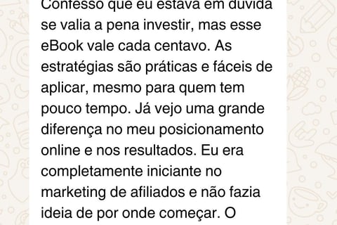 Com anos de estudo, testes e adaptações, refinei as melhores estratégias de marketing de afiliados, transformando conhecimento em resultados reais. Minha experiência me levou à independência financeira, e agora compartilho um guia confiável para quem deseja trilhar esse caminho com segurança. Se você busca estratégias validadas por quem realmente entende do assunto, pode confiar: estou aqui para te guiar rumo ao sucesso no marketing de afiliados!